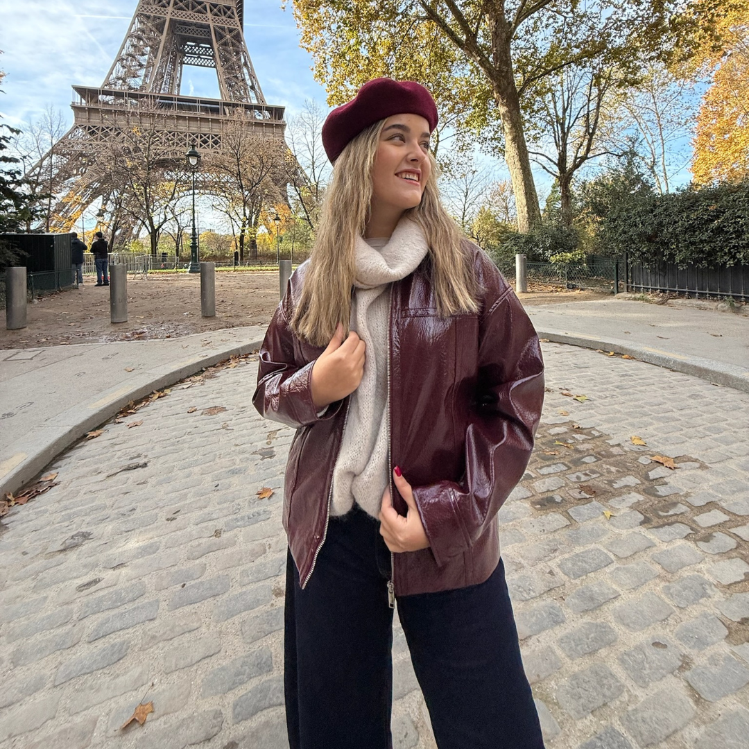 Deze bordeaux rode leren jas is de perfecte tussenjas voor deze herfst. Door de trendkleur bordeaux is de jas super makkelijk te stylen met bijvoorbeeld een jeans en top. De jas is beschikbaar in verschillende maten en heeft twee steekzakken en een ritssluiting. Deze jas is een statement piece die niet mag ontbreken in jouw herfst garderobe!