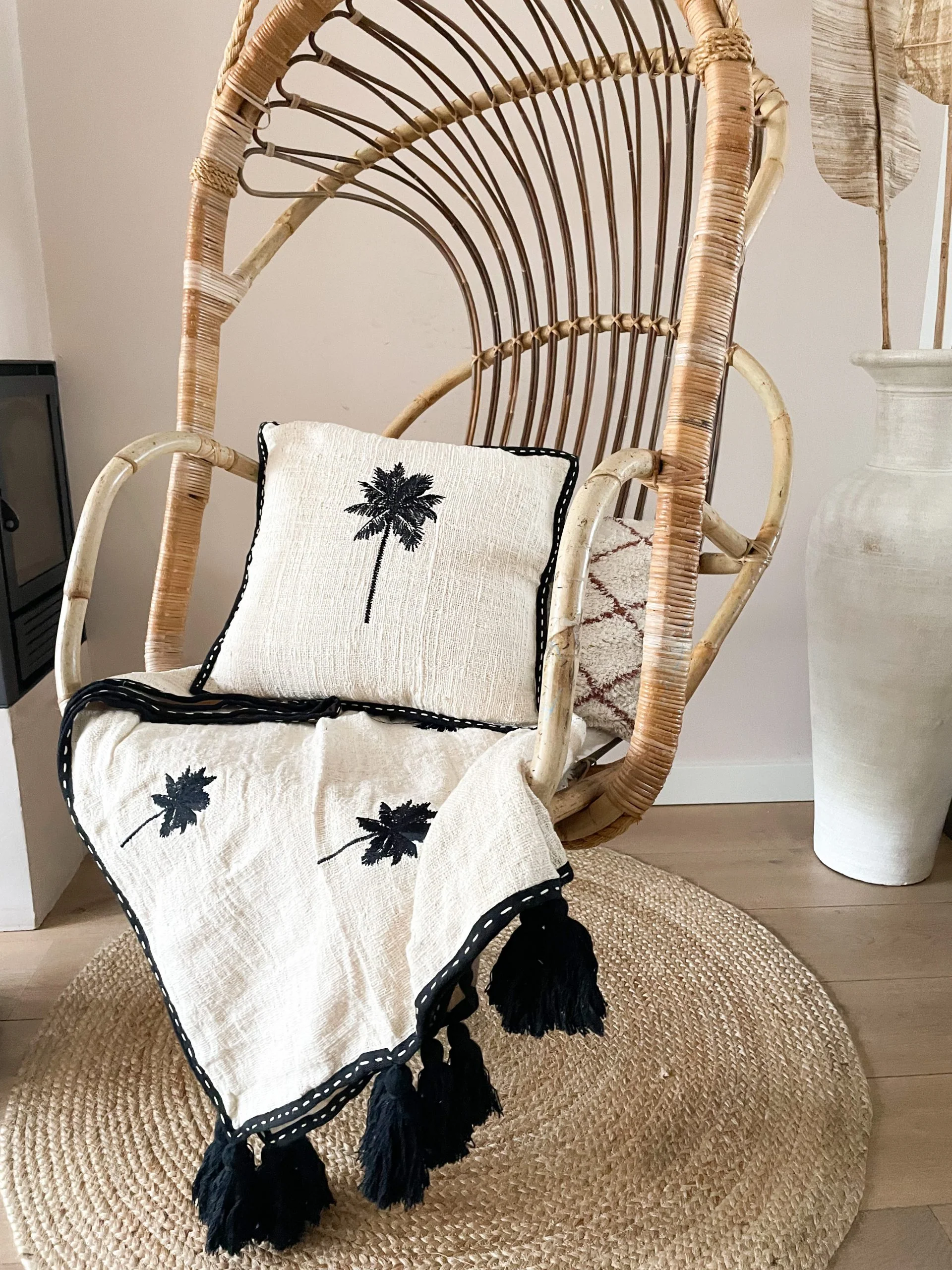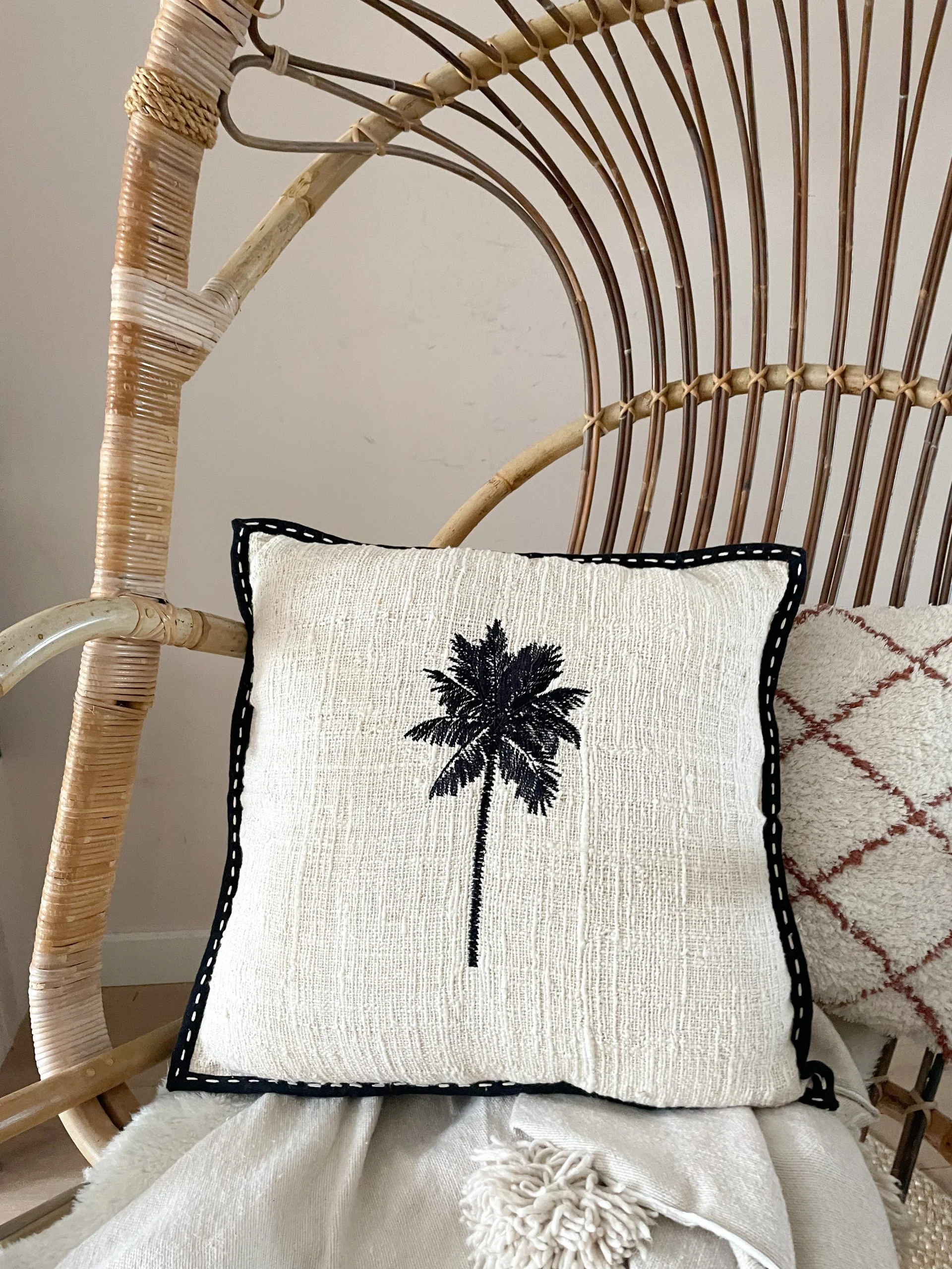 Dit superleuke handgemaakte Palmboom Kussen ‘Ayu’ is een prachtige toevoeging aan elk interieur en brengt een vleugje tropische sfeer in huis. Dit katoenen kussen is ideaal als accessoire voor op een stoel, bank of bed.