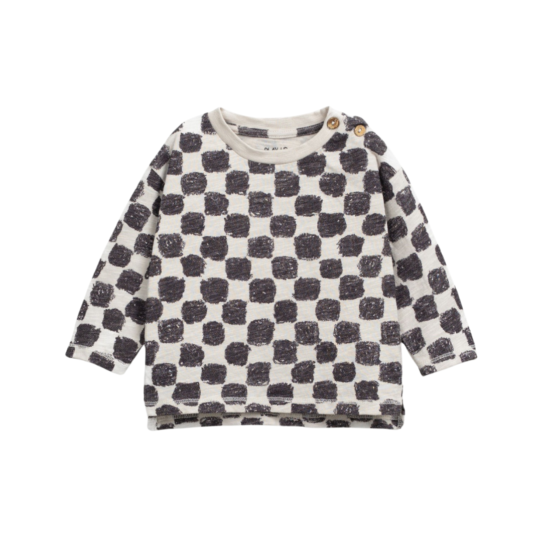 Deze leuke longsleeve van Play Up is gemaakt van biologisch katoenen jersey. Het heeft lange mouwen, een schouderopening met kokosnootknopen en een mooie tegelprint.
