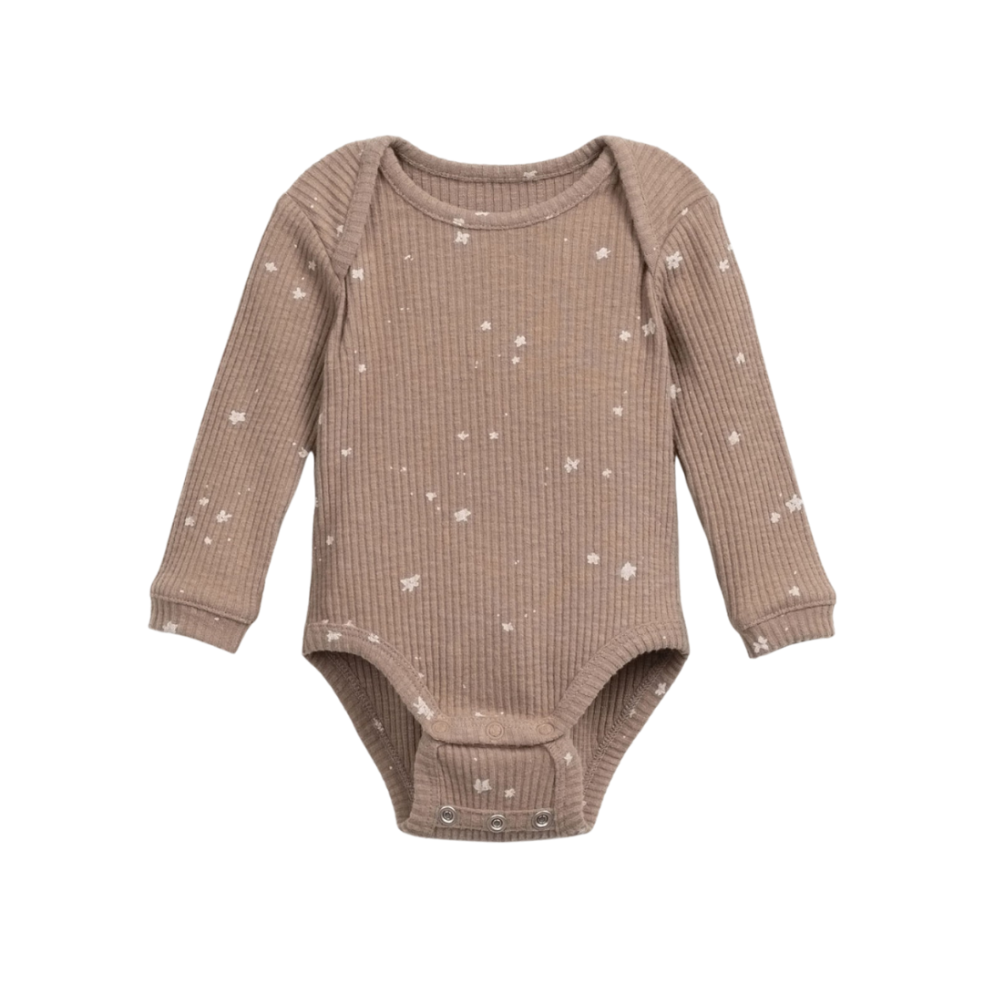 Deze romper van Play Up is gemaakt van biologisch katoenen jersey in het lichtbruin. De romper heeft lange mouwen, een elastische halslijn, een opening tussen de benen met nikkelvrije metalen drukknopen en bosbessenprint. Combineer de romper met het bijpassende broekje om een complete outfit samen te stellen.
