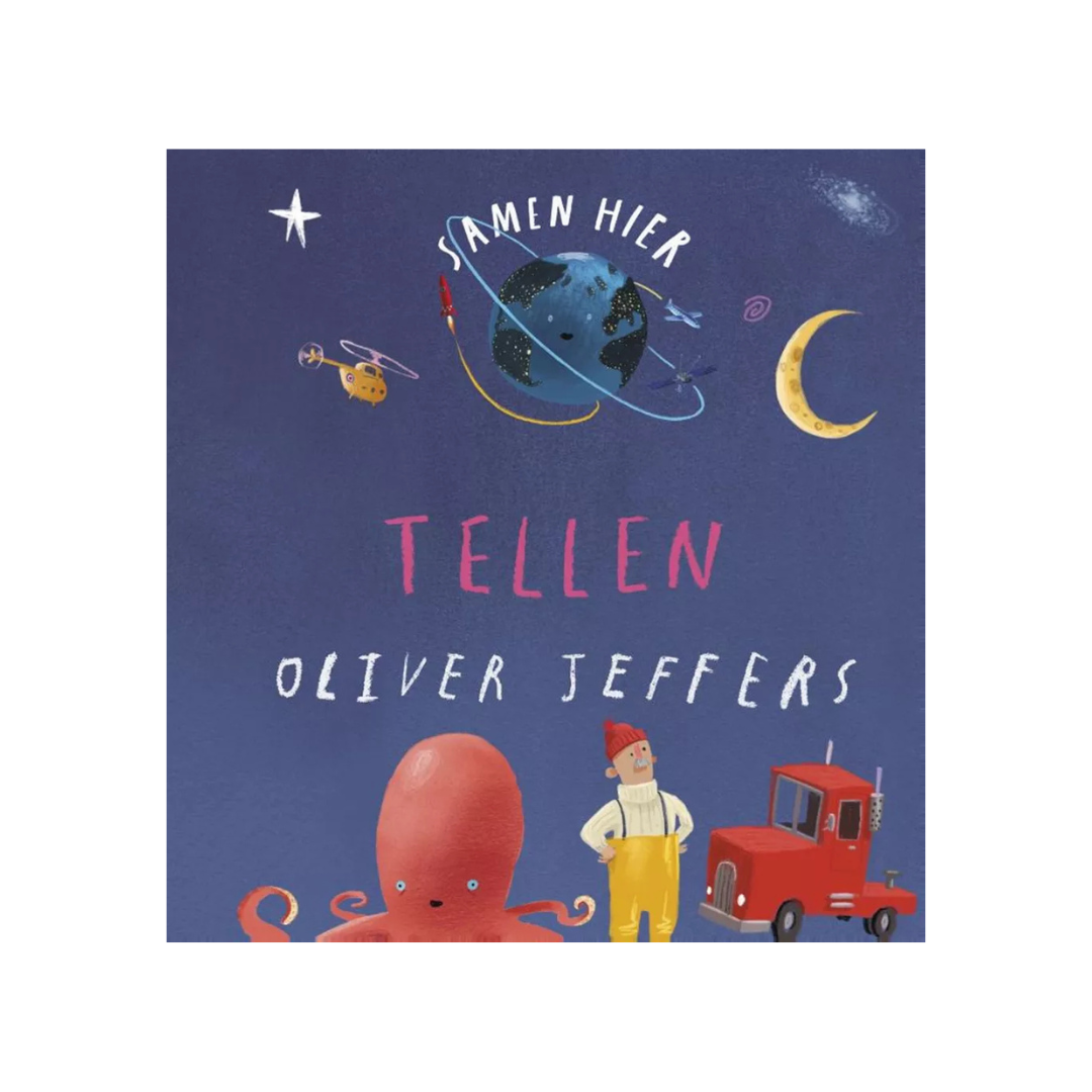 Samen tellen is een stevig kartonboek voor dreumesen en peuters, gebaseerd op Samen hier van veelbekroond kunstenaar Oliver Jeffers.