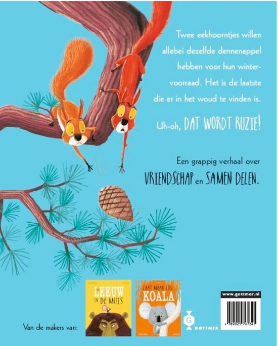 De eekhoorntjes Eduard en Reinier zijn druk bezig hun wintervoorraad aan te leggen en hebben allebei hun oog laten vallen op de állerlaatste dennenappel in het bos. In het spannende gevecht dat volgt gaan de eekhoorntjes zelfs zo ver dat ze hun eigen leven in gevaar brengen om de dennenappel te bemachtigen. Dat kan nooit goed gaan… Voor kinderen vanaf 3 jaar.