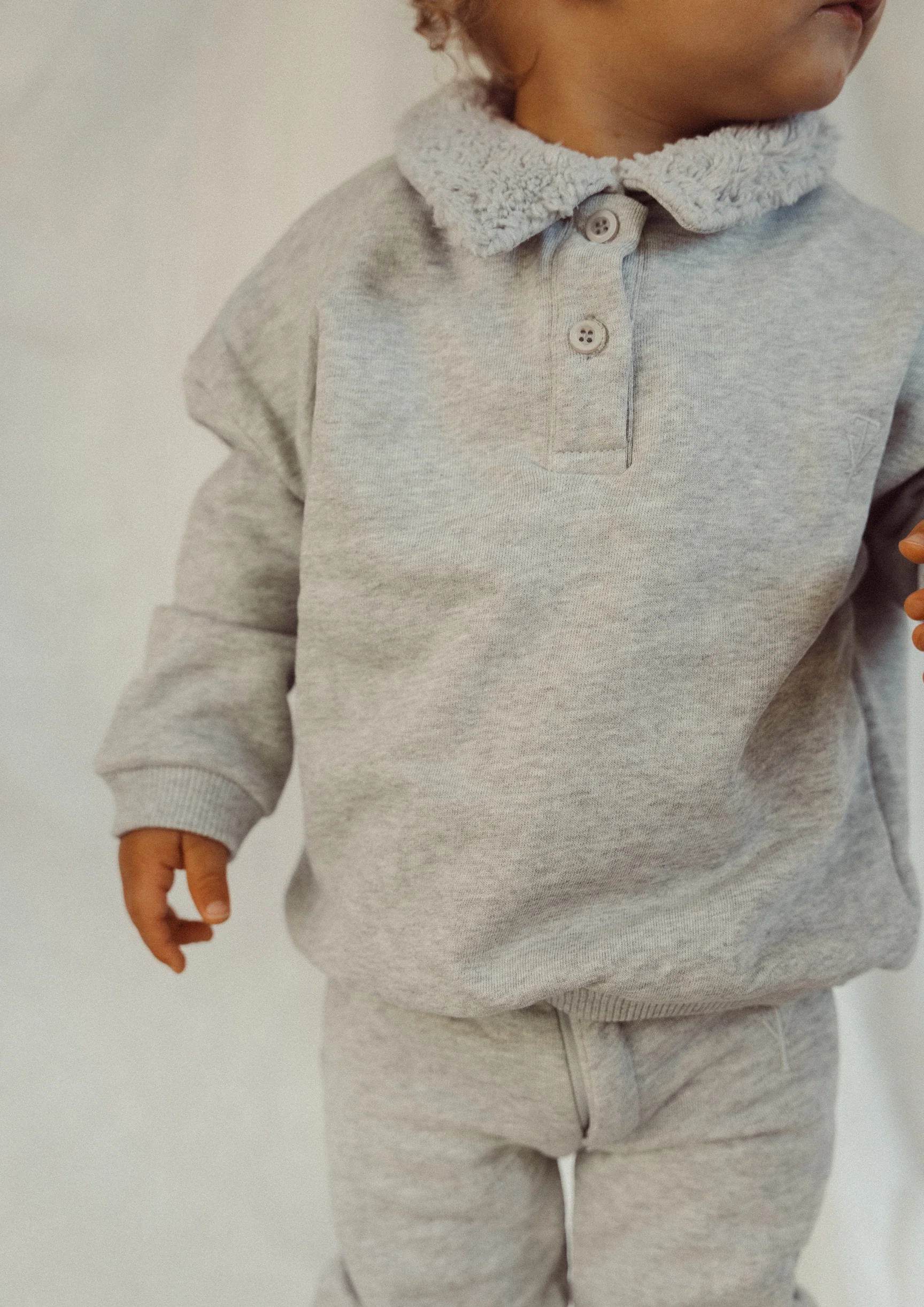 Hul jouw mini in de warmte van de Ted-trui van het merk Two You Label. Een charmant grijs exemplaar dat zowel comfortabel als stijlvol is. Perfect voor frisse herfstdagen en winteruitjes, verrijkt deze veelzijdige trui elke outfit met een vleugje verfijning. Geef zijn garderobe een boost en zie hem stralen op elk bijzonder moment dit seizoen.
