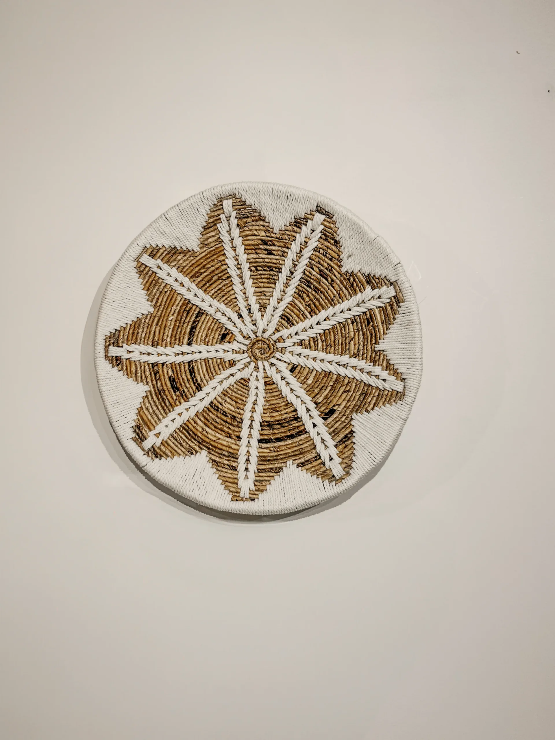 Breng natuurlijke charme en ambachtelijke flair in je interieur met deze hand gevlochten wanddecoratie.